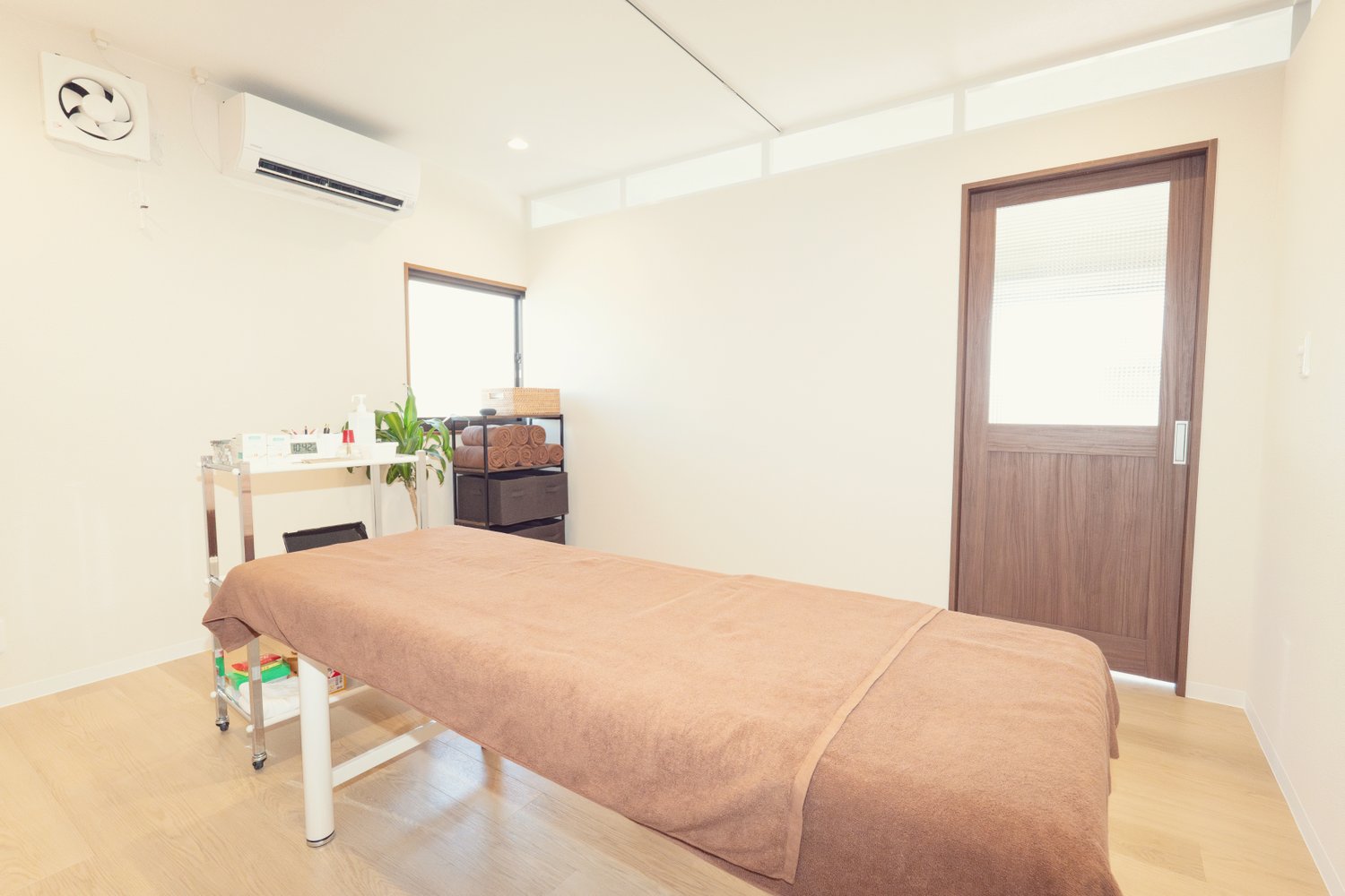 落ち着いた色調と間接照明が織りなす空間は、日常の喧騒を忘れさせてくれる安らぎの雰囲気です。施術室は完全なプライベート空間となっており、他の方を気にすることなく、ゆったりとした時間をお過ごしいただけます。
